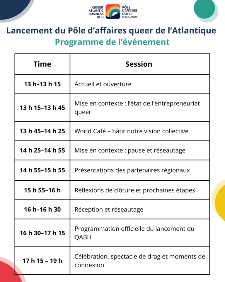 Venez apprendre, créer des liens et contribuer à façonner l’avenir des entreprises queer dans la région atlantique. Tout le monde est bienvenu.